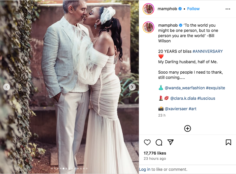 To further honor her husband, Mampho has a tattoo on her arm that reads โmore,โ symbolizing her deep love for him. She got the tattoo while living in the U.S., missing him dearly, proving that their bond is as strong and timeless as their 20 years together.