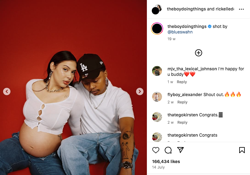 South African rapper A-Reece, whose real name is Lehlogonolo Ronald Mataboge, and his longtime partner, Rickelle Jones, have joyfully announced the birth of their first child, a beautiful daughter named Brielle. The couple, who have long been private about their personal lives, revealed their pregnancy to the public in July, much to the delight of fans, known as “The Slimes,” as well as fellow celebrities who showered them with love and congratulations.