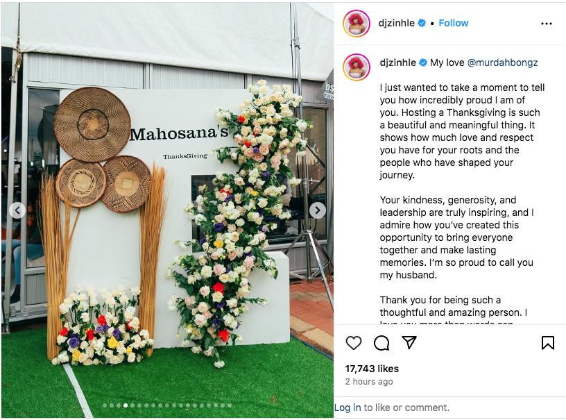 In a heartfelt tribute to her husband, DJ Zinhle took to social media to express her gratitude for Murdah Bongz’s thoughtfulness in hosting the thanksgiving event. She wrote, “My love @murdahbongz, I just wanted to take a moment to tell you how incredibly proud I am of you. Hosting a Thanksgiving is such a beautiful and meaningful thing. It shows how much love and respect you have for your roots and the people who have shaped your journey.”