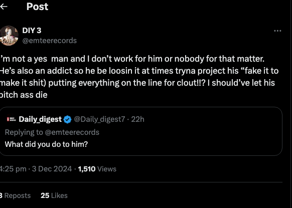 In a Twitter rant, Emtee expressed his frustration and disbelief over the situation, calling out J Molley for being βobsessedβ and a βgangster wannabe.β He continued to vent his anger, accusing Molley of poor decision-making and blaming him for his financial losses. Emtee’s frustration was palpable, as he further stated that he could handle a physical altercation if it came to that, making it clear that he was done with Molleyβs behavior.