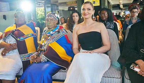 Mia Le Roux was the epitome of sophistication in a sleek black-and-white dress, while Dr. Mahlangu, a living legend of Ndebele art, dazzled in her vibrant traditional attire. The two queensβ presence at the event quickly became the talk of the town, as their outfits perfectly showcased a celebration of South African culture and contemporary fashion.