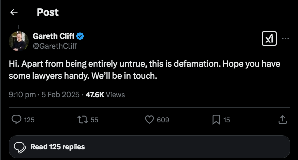 In his tweet, Cliff left no room for ambiguity, stating, “This is defamation. Hope you have some lawyers handy. We’ll be in touch.” As the situation develops, it seems likely that legal action will follow, further intensifying the media storm surrounding Cliff.