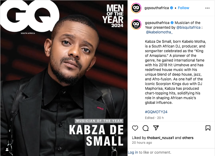 Kabza De Small has once again solidified his place as one of South Africaβs leading musical icons, winning the coveted Musician of the Year award at the 2024 GQ South Africa Men of The Year Awards. The Amapiano sensation, known for his chart-topping hits and unrivaled influence in the genre, was celebrated for his groundbreaking contributions to music and his relentless dedication to shaping the soundscape of South African music. Fans across Mzansi were quick to praise him for the well-deserved accolade, with many expressing their pride in his success and affirming that South African music is in good hands.