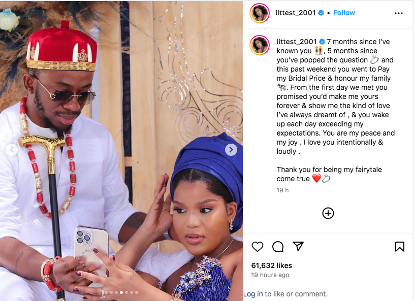 In a heartfelt post, the 23-year-old influencer reflected on the deep bond she shares with her partner, expressing gratitude for the love and support he has shown her since they first met. “From the first day we met, you promised you’d make me yours forever and show me the kind of love I’ve always dreamt of, and you wake up each day exceeding my expectations. You are my peace and my joy. I love you intentionally and loudly,” she wrote, her words filled with emotion.
