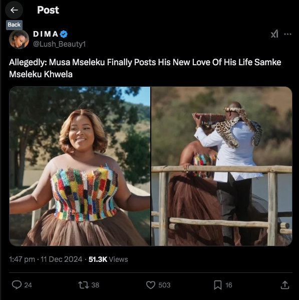 Musa Mseleku, the prominent businessman and polygamist, recently stirred social media after introducing his fifth wife on his reality TV show Uthando Nes’thembu. The announcement, accompanied by a viral photo of his new wife, reignited public interest in his personal life and family structure. Despite the buzz, Mseleku is firm in stating that his new wife will not dictate how his life unfolds.