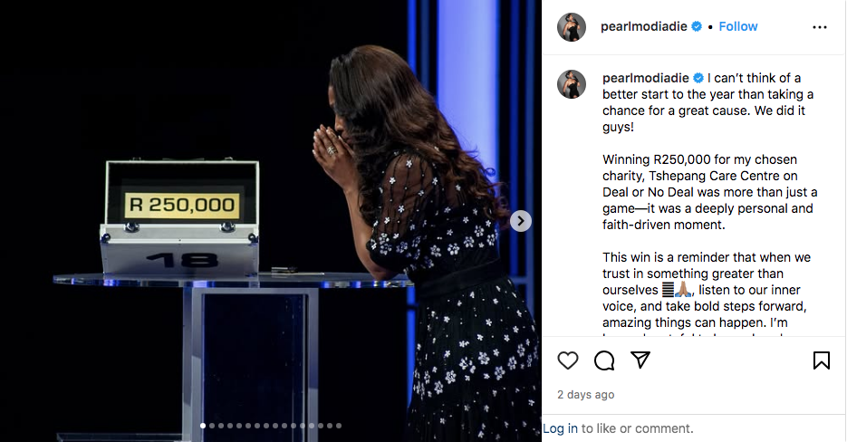 Pearl Modiadie has kicked off 2025 with a huge win, taking home R250,000 on the celebrity edition of Deal or No Deal. The South African media personality and actress shared the exciting news with her followers on Instagram, where she expressed her gratitude and excitement about the victory. Modiadie, known for her role in The Redemption, not only celebrated her success but also highlighted the meaningful cause behind her win.
