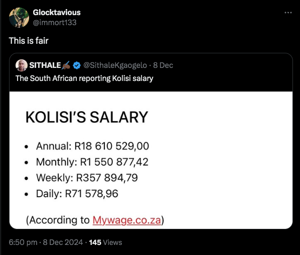The revelation has prompted many South Africans to weigh in on whether Kolisi’s pay is justified. “He’s the country’s head boy after all,” one fan commented, acknowledging the impact Kolisi has had not only on rugby but also as a role model for young South Africans. Given his pivotal role in leading the Springboks to World Cup glory, many argue that the salary reflects his immense value to the sport and his broader influence as a national figure.