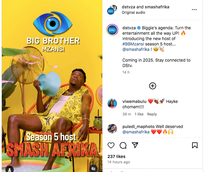 As the new host, Smash Afrika is poised to bring his signature warmth, enthusiasm, and authentic energy to the show, enhancing the Big Brother Mzansi experience for viewers and contestants alike. Fans of the show can expect a fresh dynamic as Smash takes the reins for what promises to be an unforgettable season.