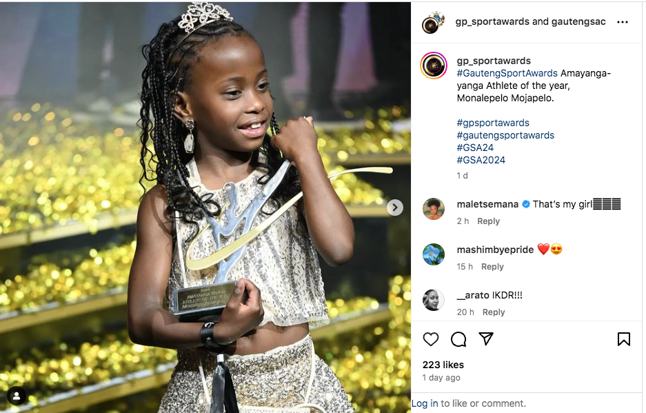 Monalepelo “Pelo” Mojapelo, a promising young gymnast from Serengeti, Kempton Park, has quickly made her mark in the world of gymnastics. At just seven years old, she was honored with the prestigious Amayanga Yanga Athlete of the Year award at the Gauteng Sports Awards, which took place at the University of Johannesburg on 24 November.