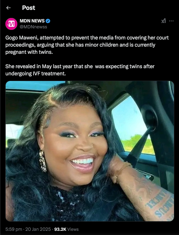 According to sources, Maweni, who is reportedly eight months pregnant as of January 2025, requested that her case be kept out of the media spotlight. She expressed worry about the potential impact the public scandal could have on her family, particularly her minor children. In a recent development, her case has been postponed to January 27, 2025, leaving the media and the public in suspense.