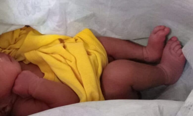 A newborn, believed to be just four hours old, was discovered by a community member abandoned in a refuse bag.