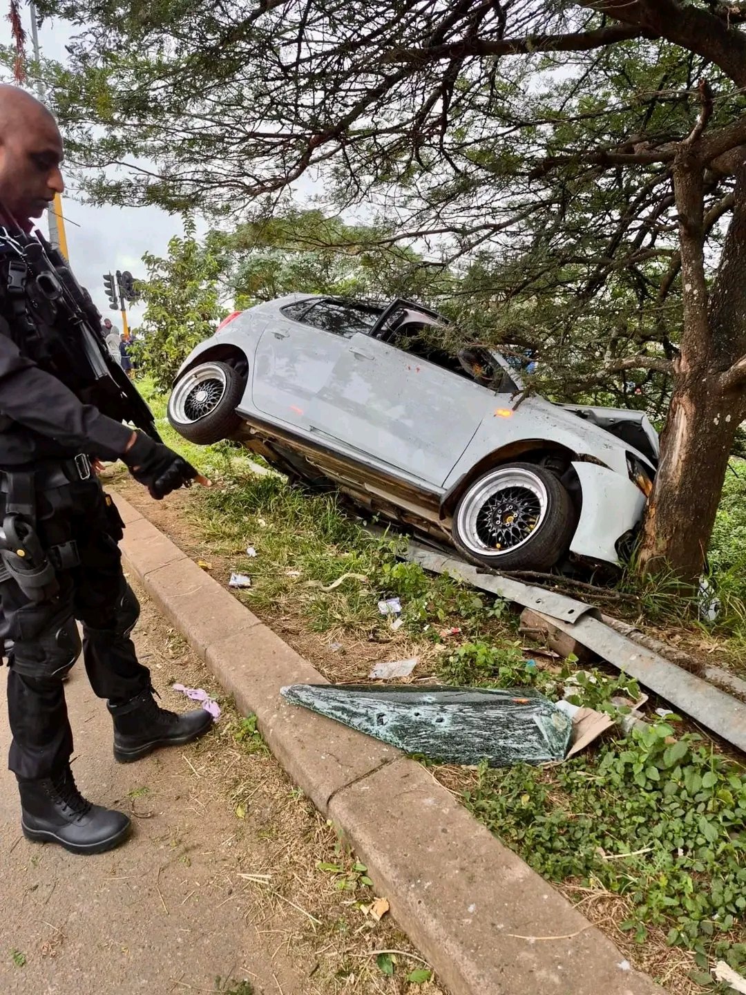 Reaction Unit South Africa (RUSA) responded to emergency calls around 06:57, rushing to the scene where they discovered a white VW Polo crashed into a tree and riddled with bullet holes. The victim was found slumped in the driverβs seat, having suffered multiple gunshot wounds, and was declared dead at the scene by paramedics.