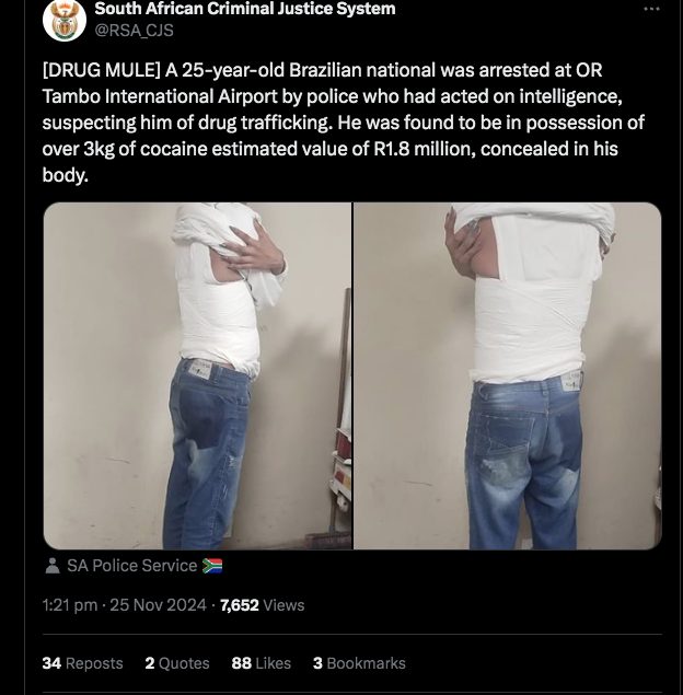 The Brazilian national, currently in police custody, is expected to appear in court soon to face charges related to drug trafficking. SAPS officials have emphasized that these arrests are part of a broader effort to combat transnational drug networks operating through South Africaβs airports.