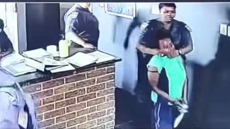 The video, lasting over two minutes, shows the assault in chilling detail. In the footage, a female officer is seen slapping the victim across the face, followed by another officer who pushes her toward the entrance of the station. Despite her attempts to resist, the victim is forcibly moved, while the officers maintain control.