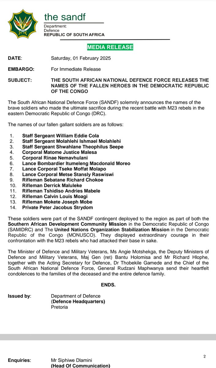 The committee further emphasized the need for robust support systems for the families of the fallen soldiers, acknowledging the profound loss these families have endured. In a move to honor the deceased, the SANDF released the full list of the soldiers who lost their lives in the DRC on Saturday, February 1, marking a tragic chapter in the countryβs ongoing involvement in regional peacekeeping efforts.