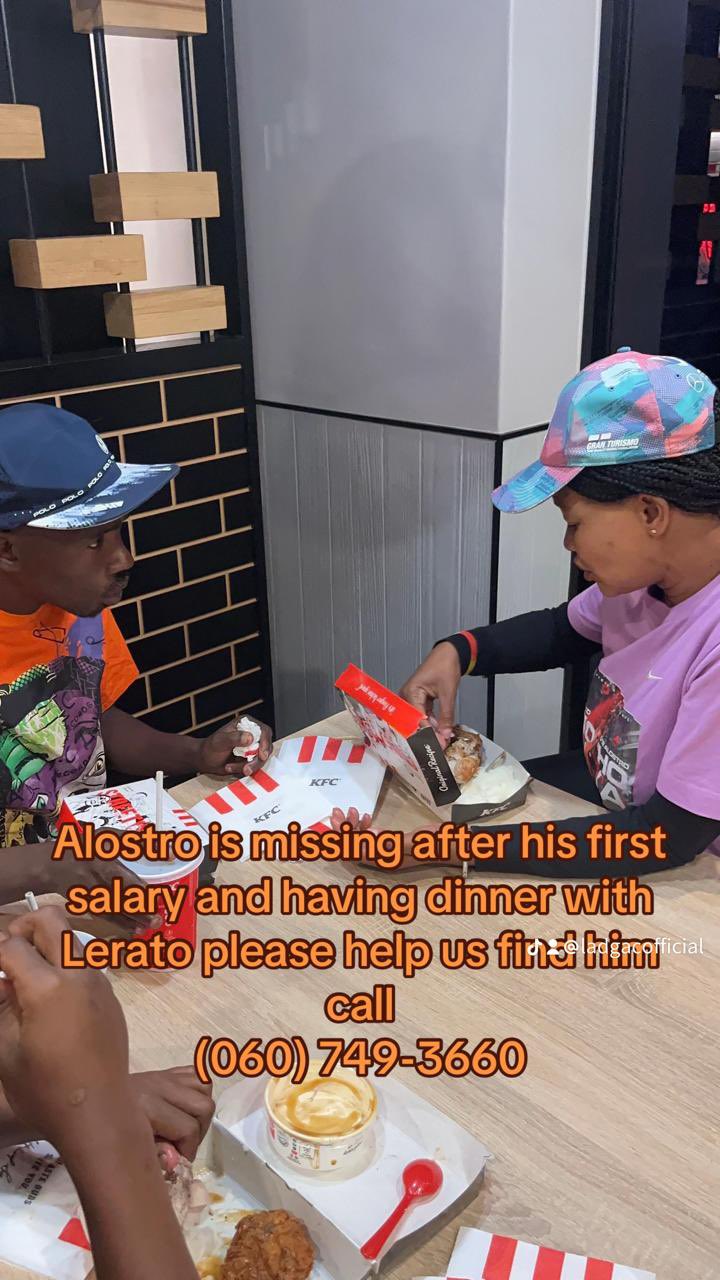 According to those close to him, Alostro was last seen dining with a woman named Lerato, celebrating his first salary β a milestone he had looked forward to for months. But that night took an unexpected turn, and he hasnβt been seen or heard from since.