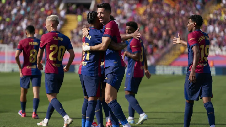 From the very start, Barcelona showed their intent, controlling possession and creating numerous chances. The opening goal came in the 14th minute when Robert Lewandowski found the back of the net with a clinical finish, putting Barcelona ahead 1-0. The Polish striker’s goal set the tone for the rest of the match, as Barcelona looked more fluid and sharp in attack compared to their previous outing.